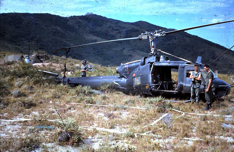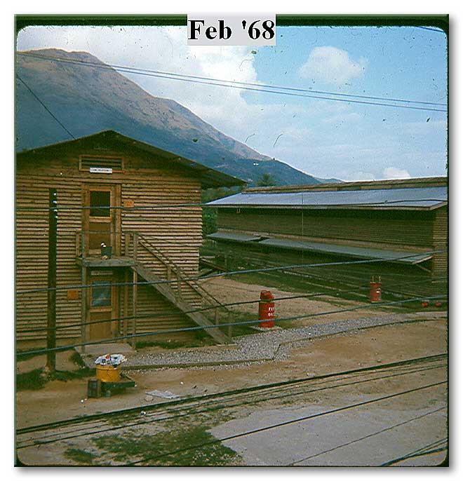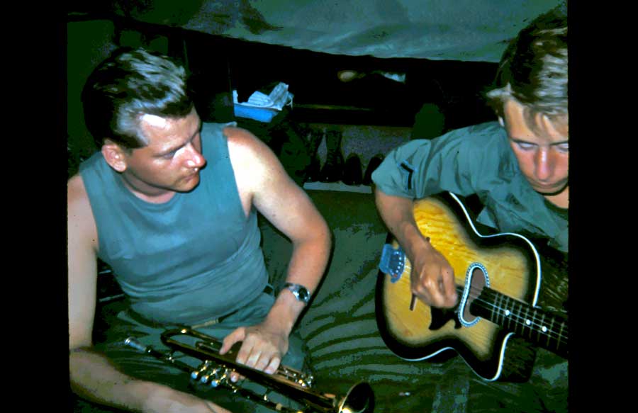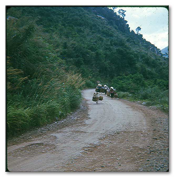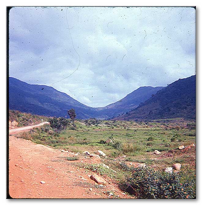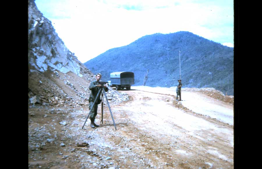 'Locke' and Sgt. Frasher on a mountain pass, while surveying. Locke is on the level, and Bubba is holding the rod. |