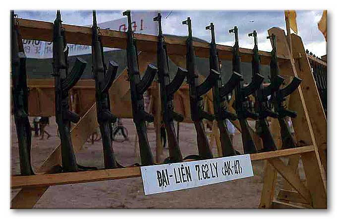 Exhibit of captured VC/NVA weapons - Qui Nhon - AK47's |