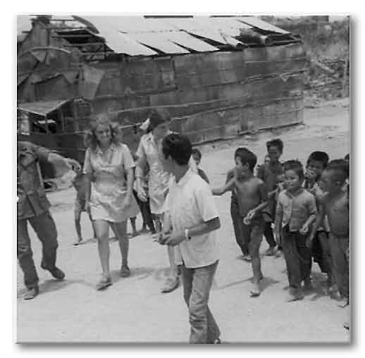 Doughnut Dollies doing the tourist number in our project. |
