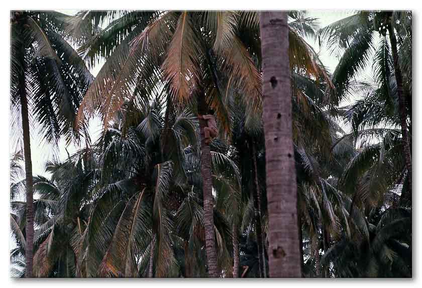 Coconut picker going up tree B CO area |
