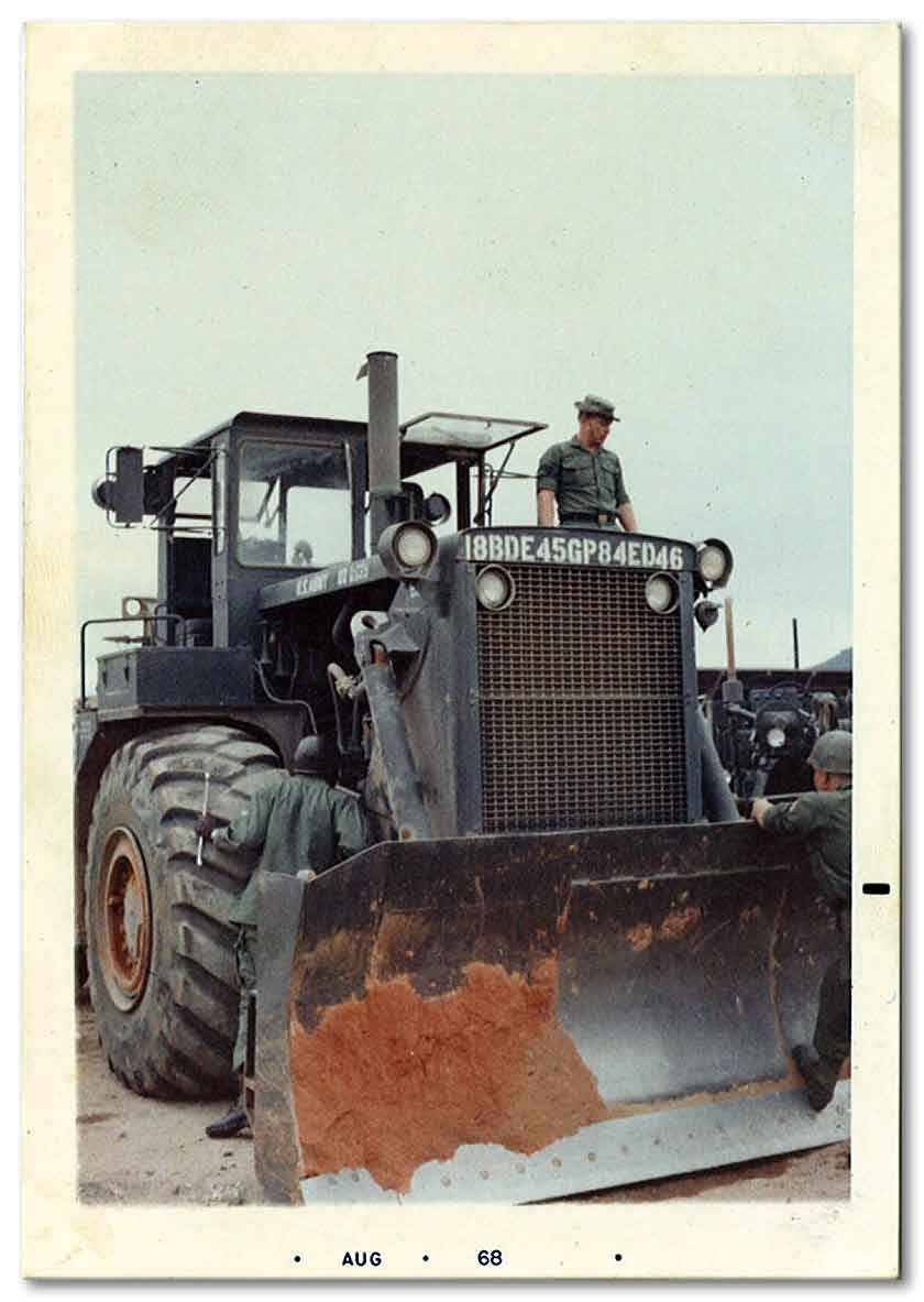 Showing a soldier standing on a bob-tail 290 tractor D-46 is Roger Collis. This was the last tractor I operated before leaving VN.